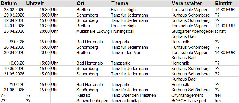 Externe Termine mit der Möglichkeit zu Tanzen